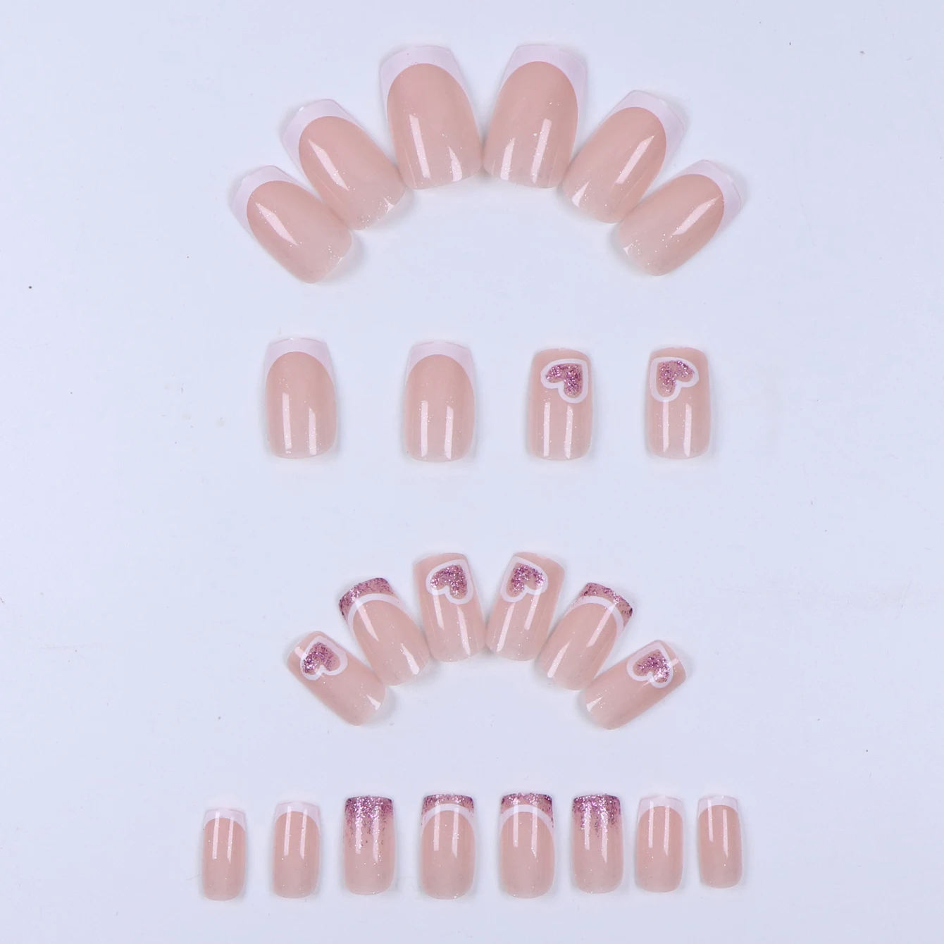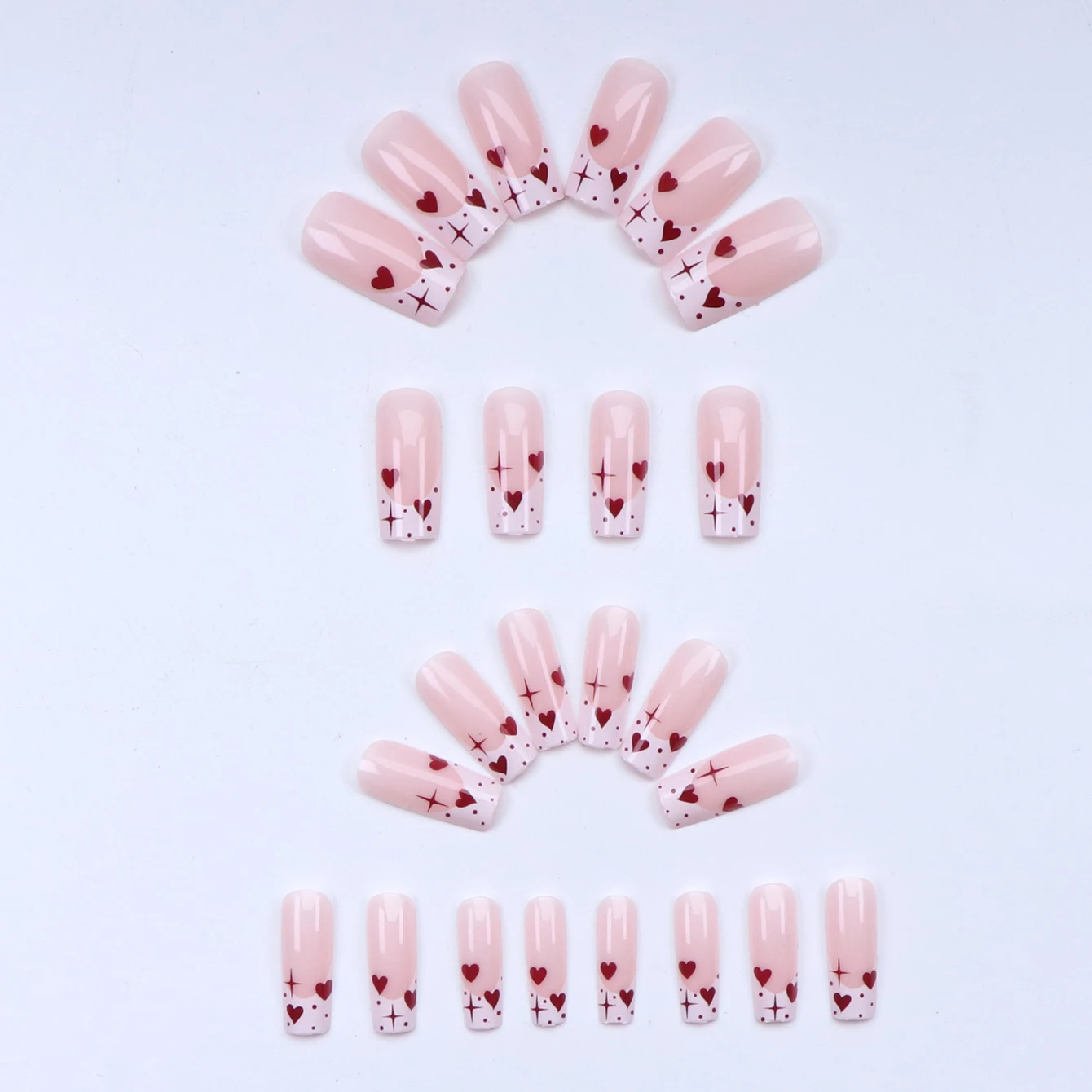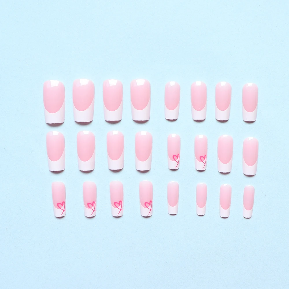 24PCS White French-Edge Rectangular False Nails With Heart And Star Designs, Reusable Acrylic False Nails