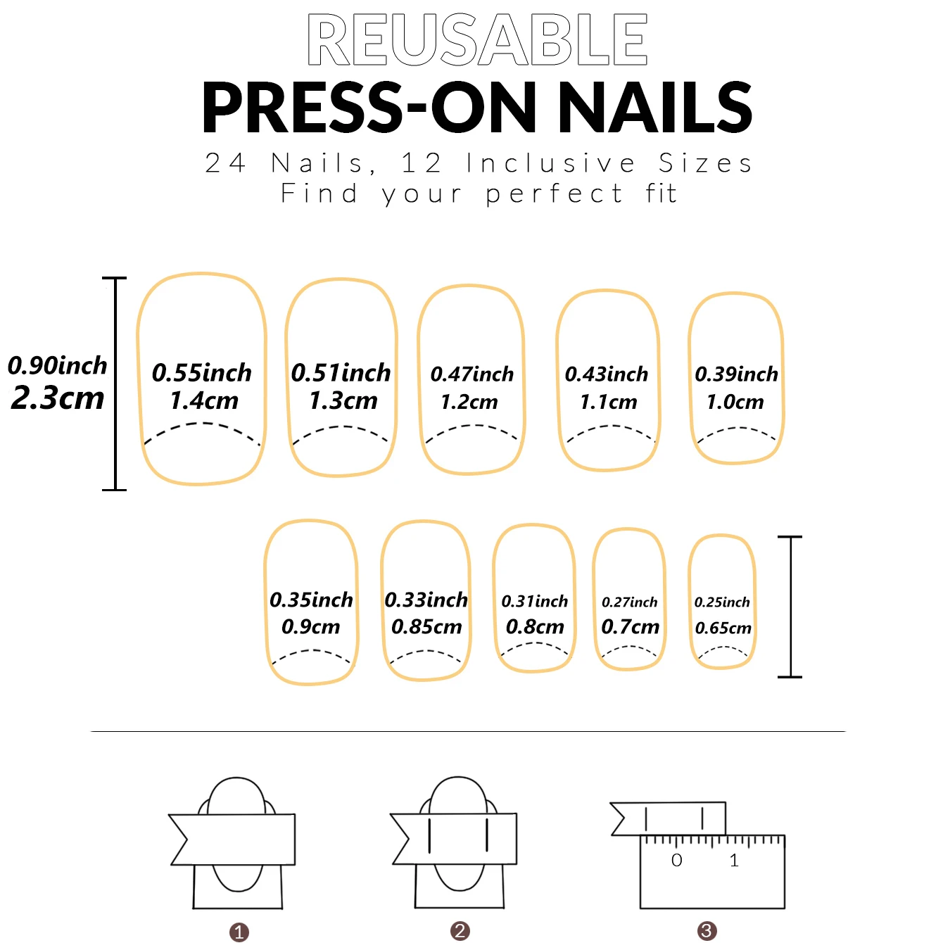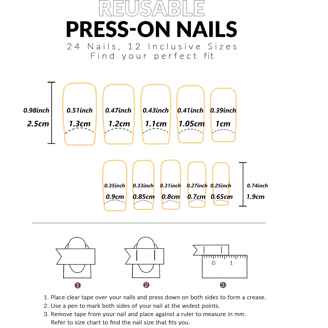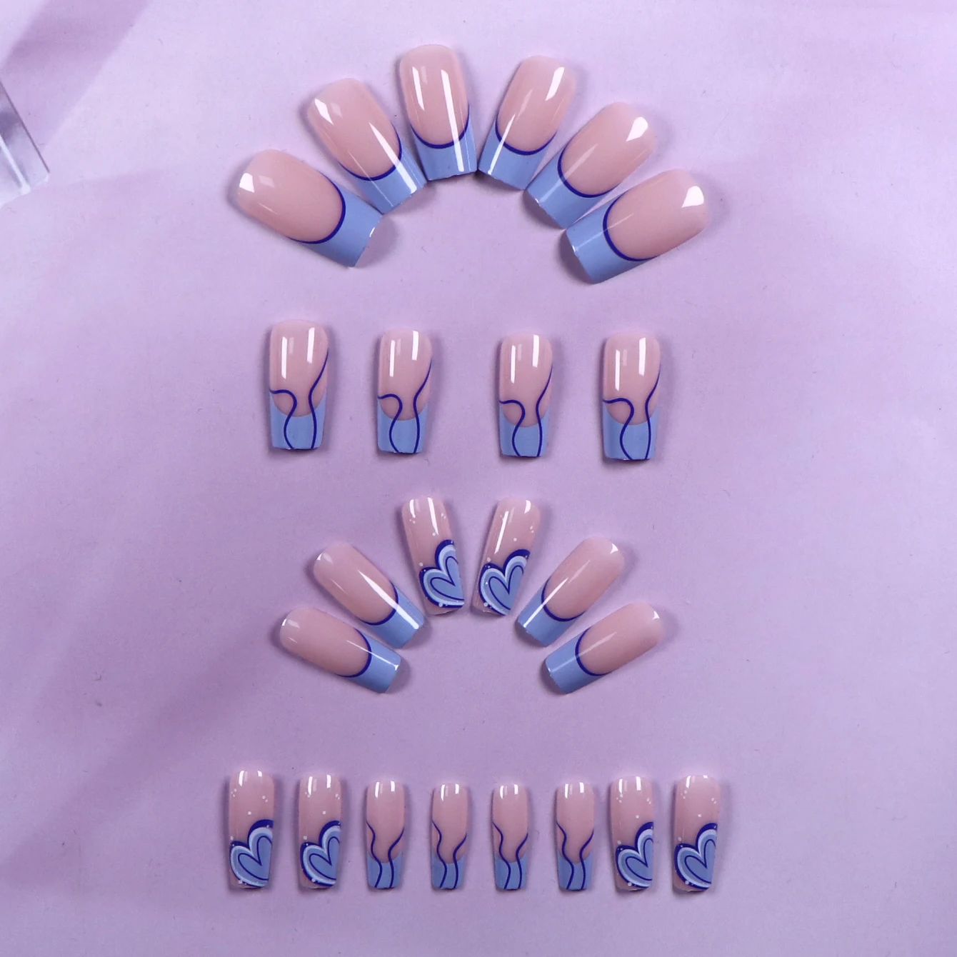 24PCS White French-Edge Rectangular False Nails With Heart And Star Designs, Reusable Acrylic False Nails