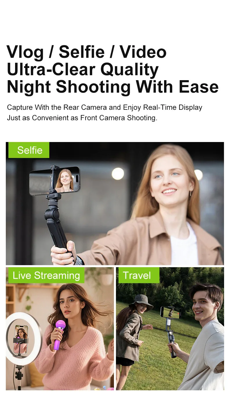 Enhance Your Vlogging Experience: The magnetic selfie monitor screen transforms your iPhone rear camera with a real-time preview, allowing you to frame and focus shots effortlessly—perfect for vlogging, streaming, and tutorials.